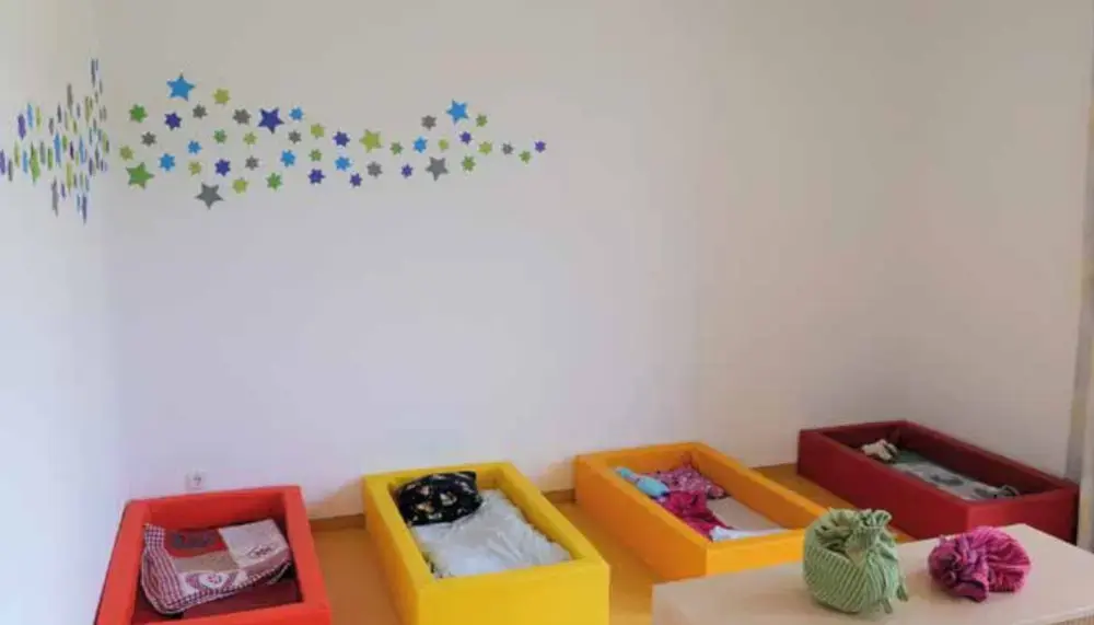 Die beiden Krippenräume sind so gestaltet, dass sie je nach Bedarf (zum Beispiel klassische Spielbereiche während der Eingewöhnung oder Funktionsräume im Jahresverlauf) den Bedürfnissen und Interessen der Kinder nachkommen können. Jeder Raum bietet den Kindern die Möglichkeit, sich frei zu entfalten. Die kindgerechten Möbel, Materialien und Farben regen zum Entdecken und Spielen an. Der Gruppenraum fördert soziale Interaktionen, gemeinsame Aktivitäten und das Gefühl von Zugehörigkeit und Gemeinschaft.