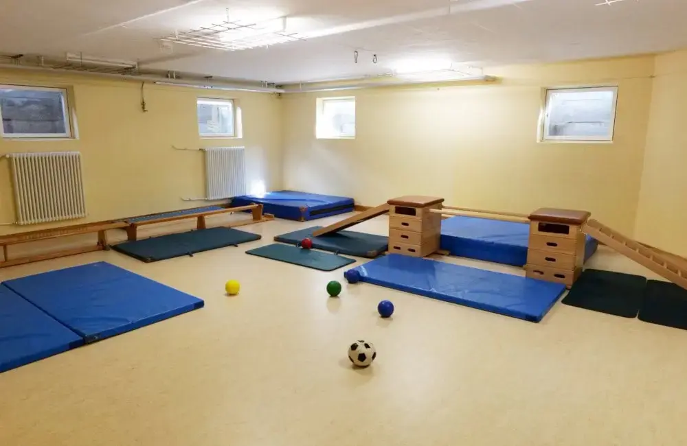 Sie bietet den Kindern die Möglichkeit, sich ausgiebig zu bewegen, zu spielen und ihre körperlichen Grenzen auszutesten. Die Turnhalle ist mit einer Vielzahl von Materialien ausgestattet, zum Beispiel Sprossenwand, Matten, Bälle, Seile, Kegel und andere Turn- und Spielgeräte. Durch vielfältige Bewegungserfahrungen werden die Kinder dazu ermutigt, ihren Körper zu entdecken, zu erforschen und gesunde Bewegungsgewohnheiten zu entwickeln.